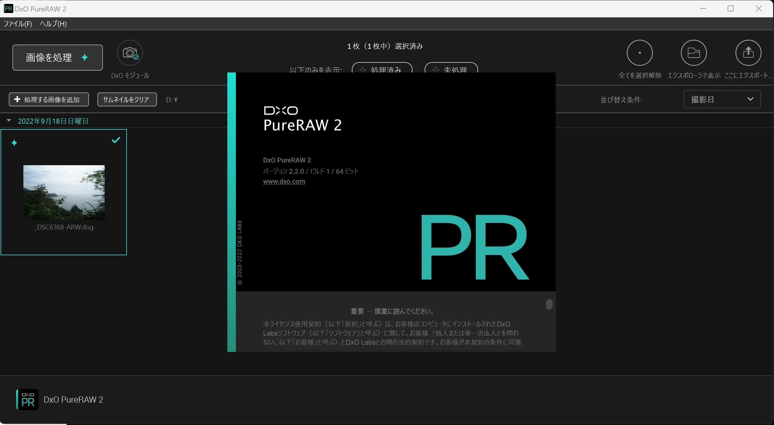 ワンタッチでRAWデータをいい感じに処理(補正)してくれるというDxO PureRAW 2、お手軽に高画質な写真ができるという触れ込みだったので、早速体験版をダウンロードして試しみました。使い方は今までで一番簡単、ガバッと写真を入れて右上の『画像を処理』ボタンを押して設定すれば完了です。